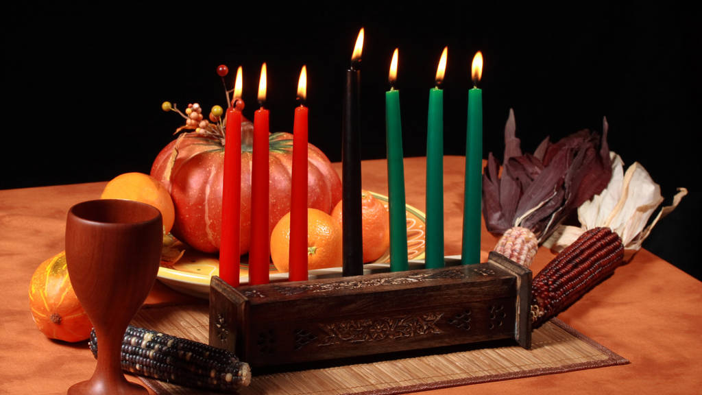 At the center of any Kwanzaa celebration is the Kinara (candle holder). It holds seven candles—three red on the left, one black in the center, and three green on the right. Each night, we light a new candle to represent one of the seven principles, or the Nguzo Saba.